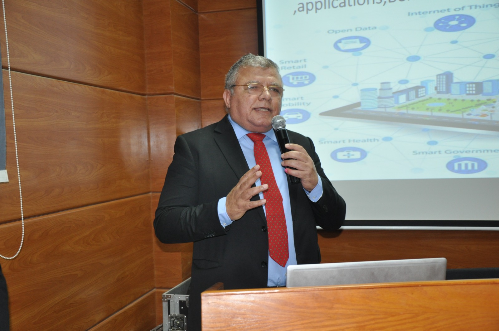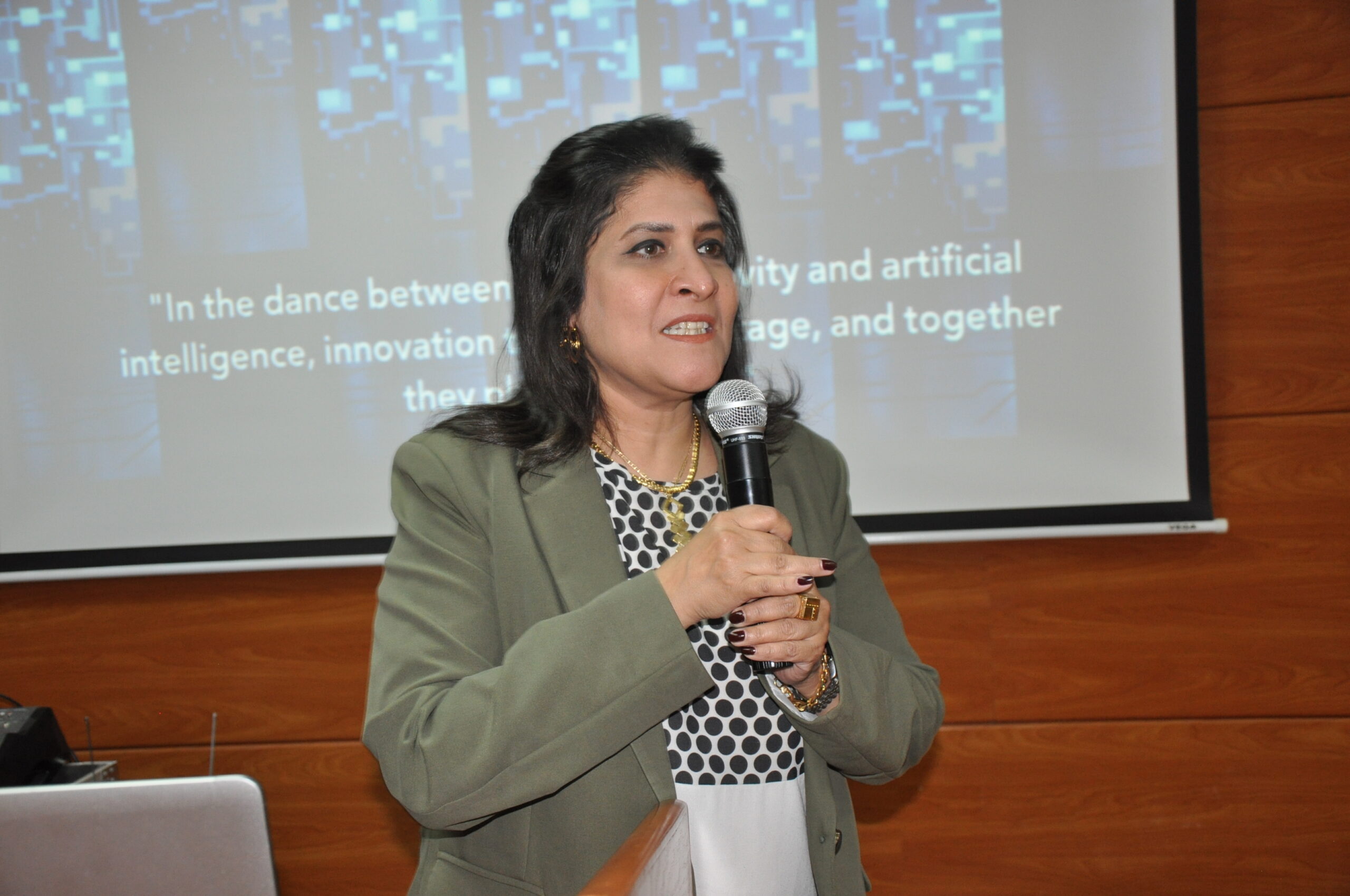 كما ألقت الدكتورة إيمان سراج الدين، المحاضرة بقسم تخطيط الشبكات بوزارة الاتصالات وتكنولوجيا المعلومات، ندوة نظمتها إدارة الاتصالات والإلكترونيات خلال اليوم العلمي.