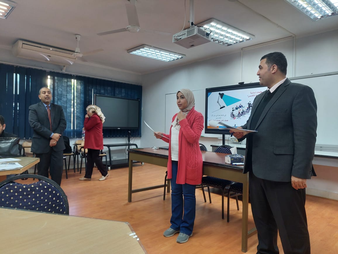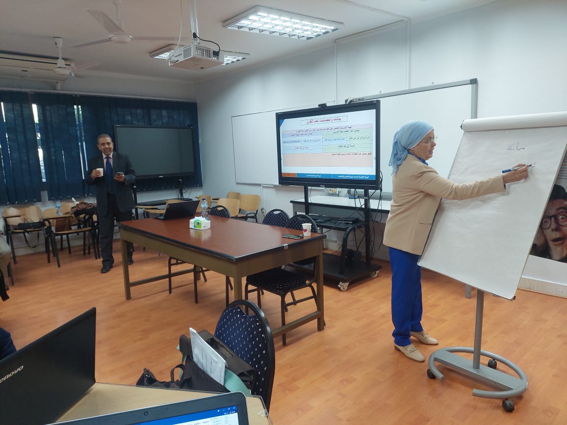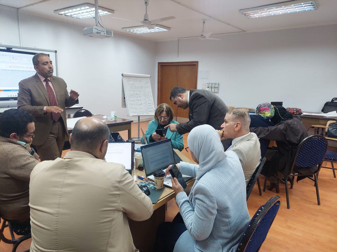 Closure of the training course (Evaluation of Academic Programs and Development of Educational Performance: Towards Sustainable Quality) presented by the National Authority for Quality Assurance and Accreditation (NAQAAE), which lasted for three days of hard work, explanation, workshops, and fruitful practical application with Prof. Dr. Safaa Shata, Prof. Dr. Wael Youssef, and other professors from the authority, which enriched the training with interaction and purposeful dialogue.
