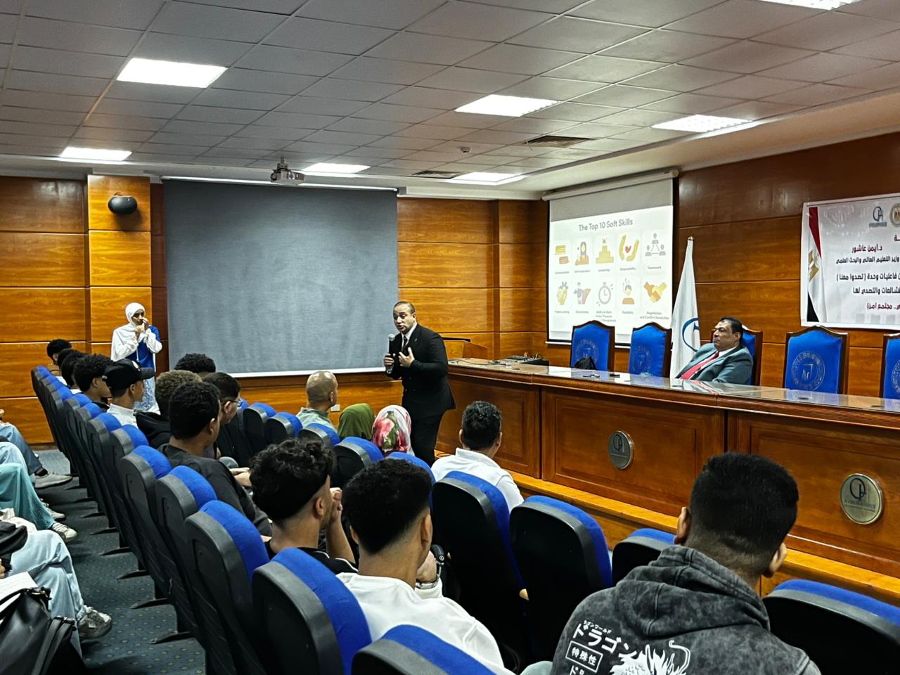 In line with the directives of His Excellency, the President of Egypt, and the cooperation between the Ministry of Higher Education, the Ministry of Youth and Sports, a dialogue session was held at OHI in 6 October City – Department of Business Administration. It was titled “The Risks of Rumors, How to Counter Them, Their Impact on National Security, and Strategies for Mitigation.”